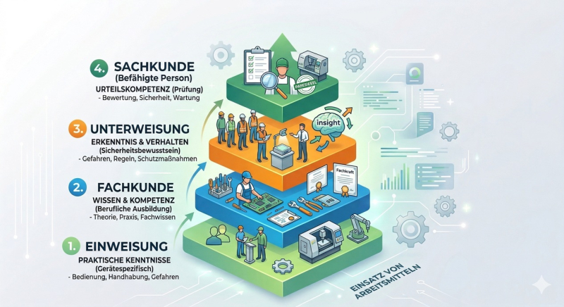 Fachkunde, Einweisung, Unterweisung und Sachkunde müssen beim Einsatz von Arbeitsmitteln abgegrenzt werden.