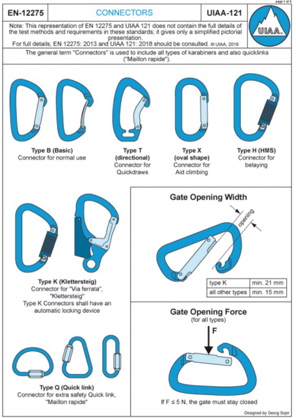 | DIN EN 12275 K | :2013-06 | Bergsteigerausrüstung - Karabiner - Klettersteig-Karabiner (Kategorie K) |