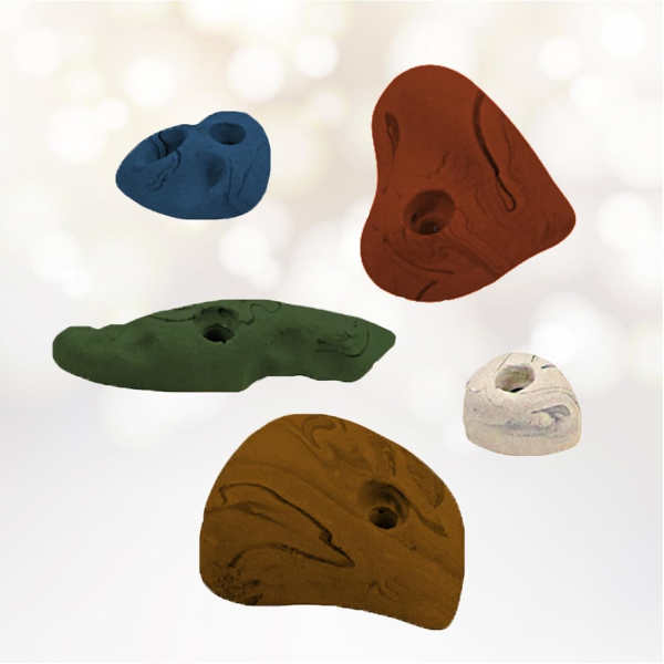 Je nach Schwierigkeitsgrad sind die Griffe für senkrechte, überhängende oder stark überhängende Gelände geeignet und ermöglichen unterschiedliche Routensetzungen.