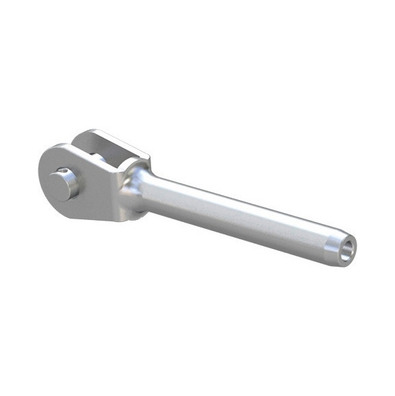 Edelstahl-Endbefestigung (Gabelkopf) aus besonders robustem V4A-Stahl. Für Seilsicherungssysteme ABS-Lock® SYS. Wird bereits am Seilende aufgewalzt ausgeliefert.