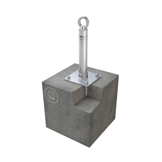 Der Anschlagpunkt ABS-Lock X-SR-B-A punktet mit seiner geringen Einbautiefe von nur 60 mm. Er wird mit 4 Ankerstangen und unserem optional erhältlichen Verbundmörtel WIT-VM-250 im Beton befestigt. So sichert er gemäß DIN EN 795 und DIN CEN/TS 16415 als Sekurant bis zu 3 Dacharbeiter gegen einen tödlichen Sturz in die Tiefe.