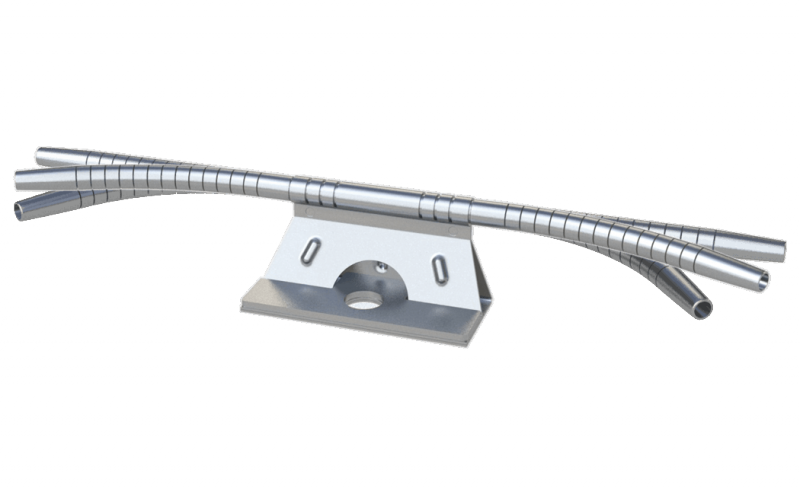 Flexibles und voll überfahrbares Kurvenelement für Seilsicherungssysteme. Für 6- und 8-mm-Seile: Das überfahrbare Edelstahl-Kurvenelement ABS TI-FlexCurve wird einfach von Hand auf den benötigten Winkelgrad gebogen.