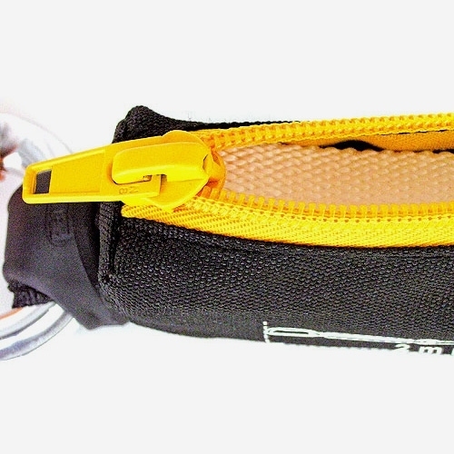 Die strapazierfähige Stoffhülle mit einem Öffnungssystem an den Enden schützt den Falldämpfer vor Abrieb und Spritzern und ermöglicht eine regelmäßige Überprüfung des Falldämpfers.