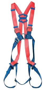 Elastischer Zweipunktauffanggurt mit Rückenauffangöse und vorderer Auffangöse, teflonbeschichtet. Mit Schnellverschlüssen.