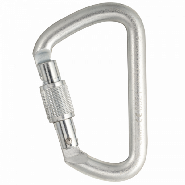 Asymmetrischer Stahlkarabiner mit großer Kapazität und Schnapperöffnung, um die Befestigung an Anschlagpunkten aus Metall zu erleichtern. Dank der großen Kapazität können mehrere Elemente daran befestigt werden. Schraubverschluss. Keylock System. Individuelle Seriennummer. Bruchlast längs: 52 kN. Bruchlast quer: 16 kN. Bruchlast Schnapper offen: 18 kN. Gewicht: 251 g. CE EN 362 B, A, T. CE EN 12275 B