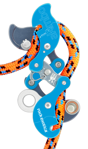 Der Akimbo lässt sich leicht öffnen, um ein Seil in der Mitte des Seils in Sekundenschnelle zu entfernen oder zu installieren, und komprimiert sich sowohl auf dem Seil als auch außerhalb des Seils wieder in einen kompakten Formfaktor.