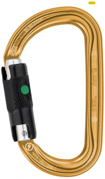 Der leichte asymmetrische Am'D-Karabiner ist aus Aluminium gefertigt. Seine D-Form eignet sich hervorragend zum Einhängen diverser Geräte (Abseilgeräte oder Verbindungsmittel zur Arbeitsplatzpositionierung). Die kantenfreie Oberfläche an der Innenseite und das Keylock-System erleichtern das Ein- und Aushängen. Der Am'D-Karabiner ist mit drei Verriegelungssystemen verfügbar: mit den automatischen Systemen TRIACT-LOCK und BALL-LOCK und mit dem manuellen SCREW-LOCK-System. Der Am'D kann mit dem CAPTIV-Positionierungsbügel kombiniert werden, um die Belastung des Karabiners in der Längsachse zu favorisieren, ein Verdrehen zu verhindern und zu gewährleisten, dass er eine feste Einheit mit dem Gerät bildet.
