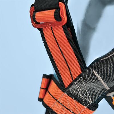 - Der elastische Unterarmgurt sichert den Arbeiter auch in schwierigen, seitlichen Hängesituationen, ohne starken Druck auf den Brustkorb auszuüben.