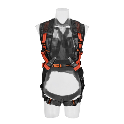 Gurt mit Weste aus luftdurchlässigem Mesh-Gewebe mit Reflexstreifen.