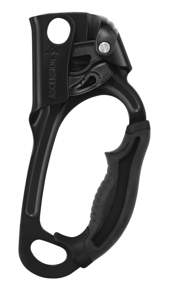 Die für den Aufstieg am Seil konzipierte ASCENSION-Handsteigklemme verfügt über einen ergonomisch geformten Griff, um den Komfort zu erhöhen und die Effizienz beim Ziehen mit einer oder mit beiden Händen zu verbessern. Die ASCENSION-Handsteigklemme verfügt über eine große Öse im unteren Bereich zum Einhängen von zwei Karabinern für Verbindungsmittel und Trittschlinge.