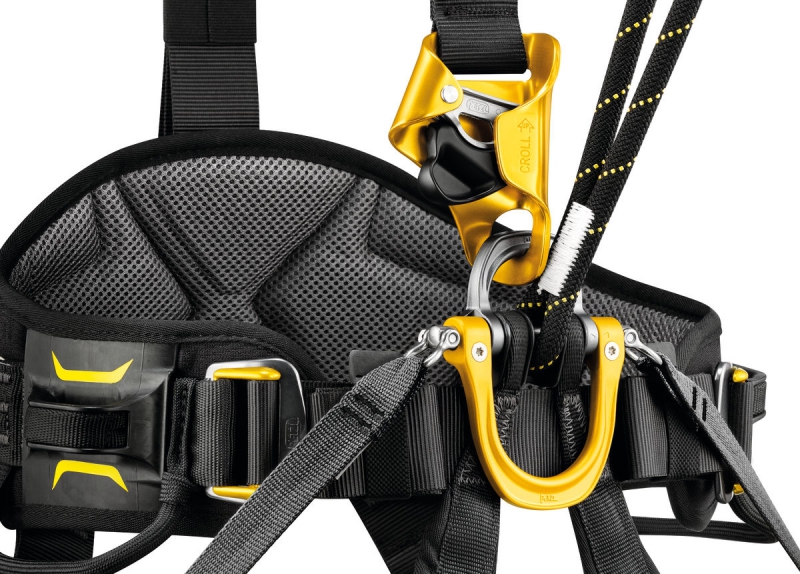 Der ASTRO BOD FAST-Gurt mit integrierter CROLL L-Bruststeigklemme wurde konzipiert, um den Komfort des Anwenders beim Aufstieg am Seil zu verbessern. Die ventrale Öse kann zum Einhängen der Ausrüstung (Seilklemme, Verbindungsmittel, Sitzbrett usw.) geöffnet werden. Halbstarrer, breiter Hüftgurt und Beinschlaufen gewährleisten optimalen Halt. Sie sind vorgeformt und mit atmungsaktivem Schaumstoff gepolstert, um den Komfort beim freihängenden Arbeiten zu verbessern. Selbstverriegelnde DOUBLEBACK-Schnallen an der Rückseite des Gurts zwischen Hüftgurt und Beinschlaufen ermöglichen eine kürzere Einstellung bei Benutzung der dorsalen Auffangöse. Mehrere Materialschlaufen und Befestigungsmöglichkeiten für CARITOOL-Gerätehalter und TOOLBAG-Werkzeugtaschen erleichtern den Transport und das Sortieren der Arbeitsgeräte. Der Gurt ist nach europäischen und russischen Normen zertifiziert.