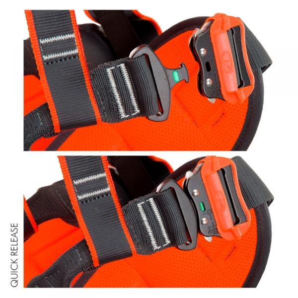 - Beinschlaufen mit schnell lösbaren Schnallen, diese besitzen eine Anzeige für die korrekte Verriegelung;