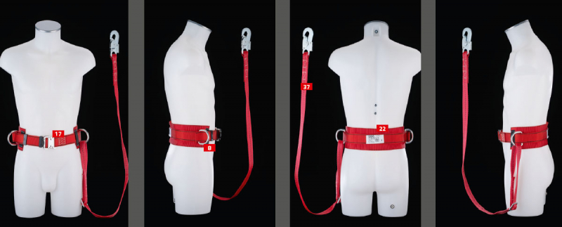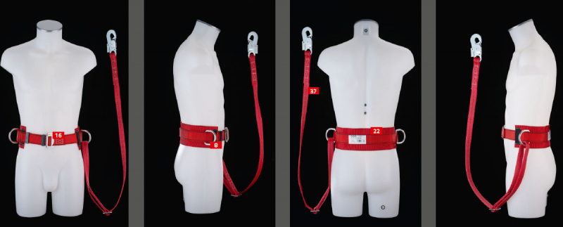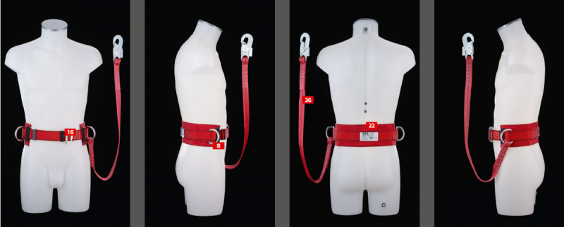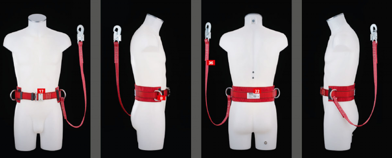 - Var R: Haltegurt mit integriertem Verbindungsmittel mit Längeneinstellung (Zum Rückhalten und zur Arbeitsplatzpositionierung)