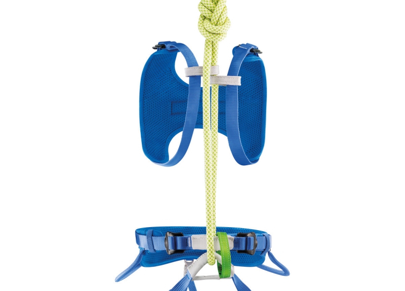 Der BODY-Schulterträger ist zur Verwendung in Kombination mit einem Sitzgurt (MACCHU) konzipiert. Durch das Anseilen auf der Höhe des Oberkörpers wird das Gleichgewicht des Kindes beim Hängen verbessert. Er ist optimal auf den Kinderkörper abgestimmt, lässt sich leicht einstellen und ist bequem.