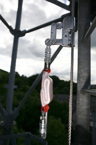 Der Cabloc™ AC350/4 Läufer kann mit allen 8-mm-Cabloc™-Edelstahl-Kabelsystemen OHNE ausgerichtetem Falldämpfer verwendet werden. Zugelassen für bis zu 136 kg Gesamtgewicht von Benutzer und Werkzeug.