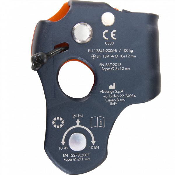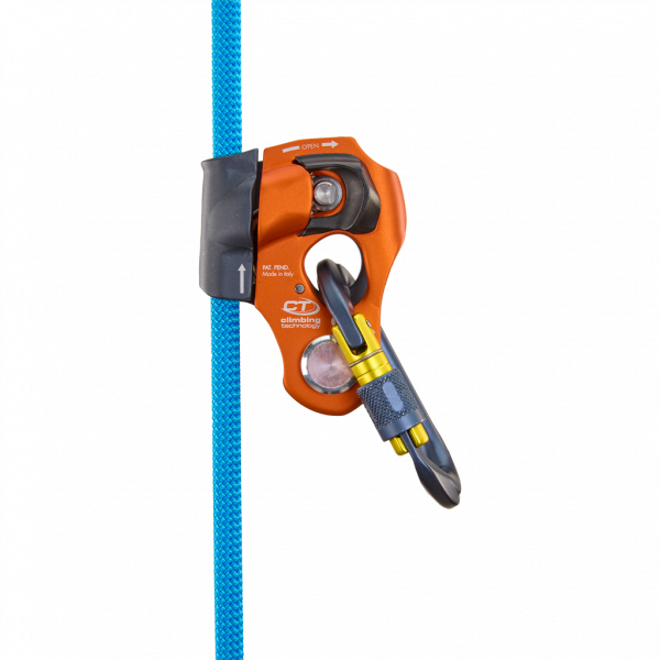 - die ergonomische Öffnung anhand des intuitiven Knopfes ermöglicht eine schnelle Installation am Seil im gewünschten Modus, auch mit Handschuhen oder unter widrigen Bedingungen;