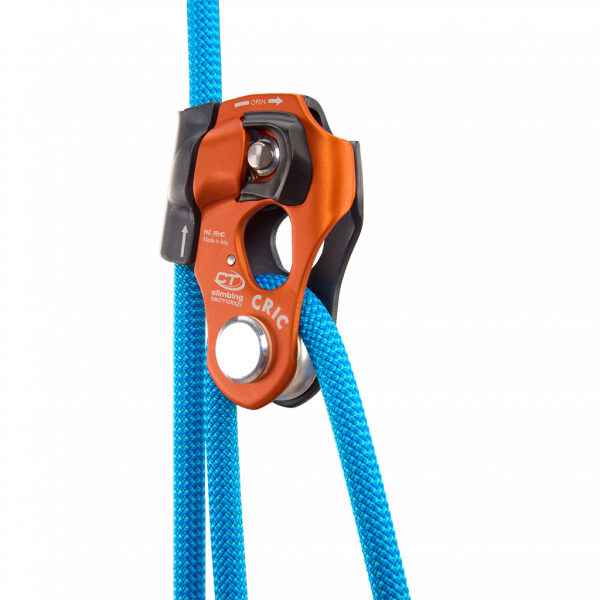 ermöglicht das direkte Bergen einer Last, das Erstellen von Flaschenzügen und das Anheben oder Selbstanheben einer Person, z.B. bei einem Sturz in eine Gletscherspalte (Bergungsmodus); - im Seilrollenmodus kann das Seil frei in beide Richtungen gleiten, während es im Bergungsmodus frei in eine Richtung gleiten kann und in der anderen blockiert;