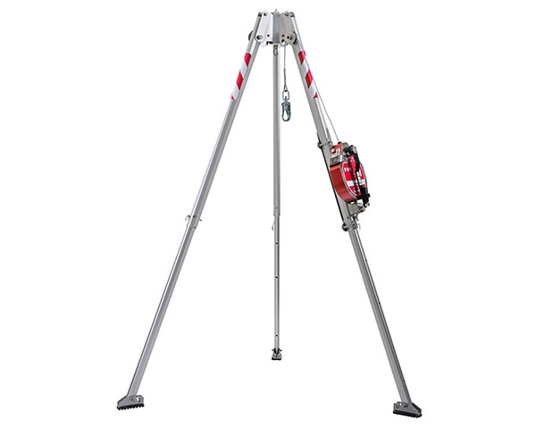 Miller DuraHoist 3Pod für zugangsbeschränkte Bereiche, ausgestattet mit 4 Anschlagpunkten und 2 Umlenkrollen.