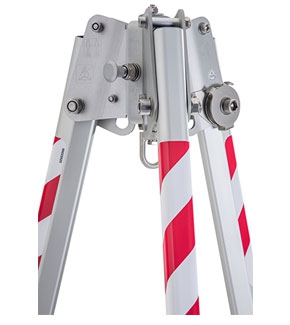 - (2) Halterung Höhensicherungsgerät mit integrierter Rettungsfunktion an Dreibein DuraHoist 3Pod MightEvac Bracket