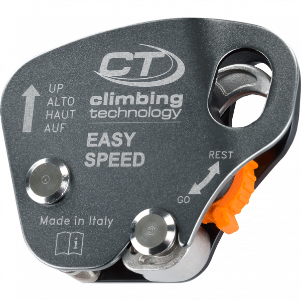- ausgestattet mit einem Einstellrad mit zwei Positionen (Rest/Go) zur Einstellung der Betriebsart: In der Go-Position kann das Gerät frei am Seil entlang gleiten und stoppt im Falle eines Sturzes. In der Rest-Position kann das Gerät manuell über dem Benutzer gesperrt werden, wodurch der potenzielle Sturzfaktor auf ein Minimum reduziert wird