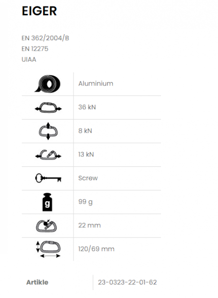 - UIAA - Standard, DIN EN 12275, DIN EN 362 B