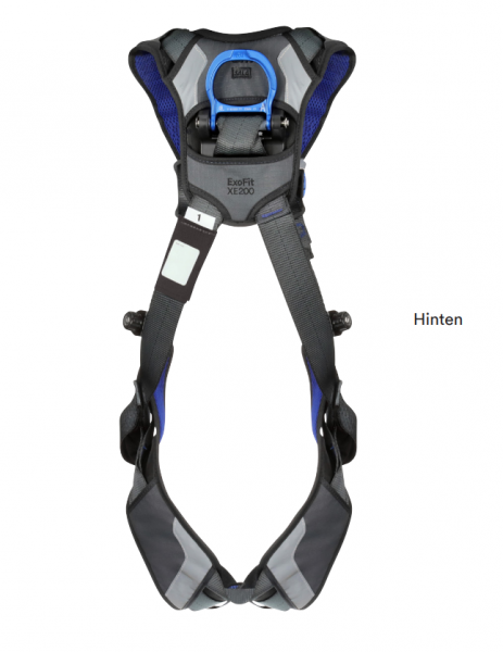 Der 3M™ DBI-SALA® ExoFit™ XE200 wurde für Benutzer entwickelt, die ungern Kompromisse eingehen, und ist mit hochwertigen Komponenten ausgestattet, die speziell für eine erhöhte Sicherheit, mehr Komfort und eine verbesserte Leistung bei Arbeiten in der Höhe entwickelt wurden. Der XE200 Komfort Auffanggurt besteht aus einem aus einem langlebigem und strapazierfähigem Polyester-Gurtband, Montageteilen aus leichtgewichtigem Aluminium, einer robusten (aber dennoch leichten) Polyester-Hybridpolsterung mit zusätzlichen Luftkanälen sowie reflektierenden 3M Scotchlite™-Einsätzen. Der XE200 ist mit moderner Technologie im Bereich der rückseitigen Auffangöse ausgestattet, was für effiziente Verbindungen und einen sicheren Sitz des Auffanggurts bei Ihren Mitarbeitern sorgt. Außerdem verfügt er über einen Revolver Einsteller für die Rumpflänge sowie selbstsichernde Automatikverschlüsse, um den Sitz zu optimieren. Der 3M™ DBI-SALA® ExoFit™ XE200 ist mit einer Reihe an 3M™ Absturzsicherungszubehör für Werkzeuge kompatibel. Alle Modelle sind mit Hängetrauma-Trittschlaufen ausgestattet.