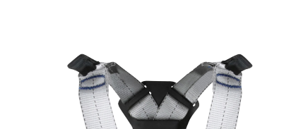- X-förmig verlaufende Brustgurte mit zentraler D-Ring Auffangöse – optimierte Position am Körper