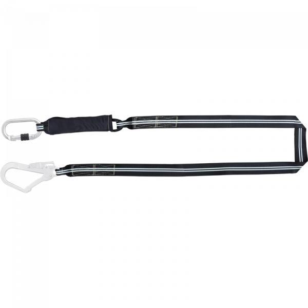 - Bandfalldämpfer aus 45 mm breitem Gurtband reduziert bei einem Sturz die Energieeinleitung in den Körper auf unter 6 kN