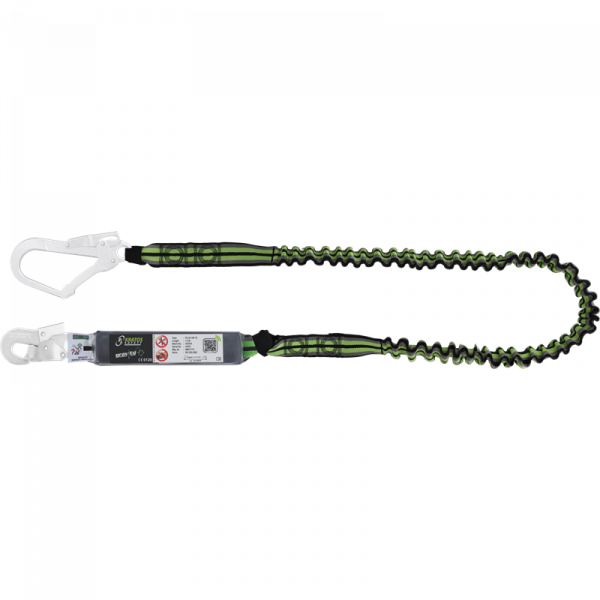 Verbindungsmittel aus elastischem Gurtband mit Falldämpfer 2 m mit Karabiner FA 5020217 Automatik-Stahlkarabiner an einem Ende und FA 5020755 Gerüsthaken am anderen Ende