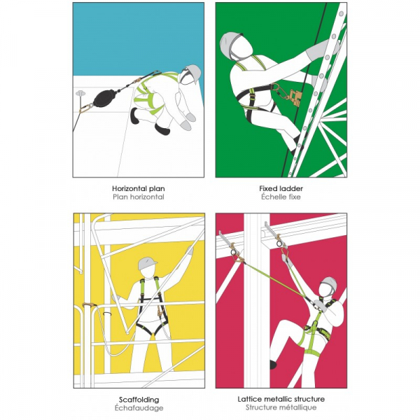 Überprüfen Sie vor jedem Gebrauch ihr Verbindungsmittel mit Falldämpfer. Wenn das Feld "NOT OK" auf dem Etikett zu sehen ist, bedeutet die, dass Ihr Gerät einen Sturz aufgefangen hat und nicht erneut verwendet werden darf. Ersetzen Sie es durch eine zulässige Ausrüstung.