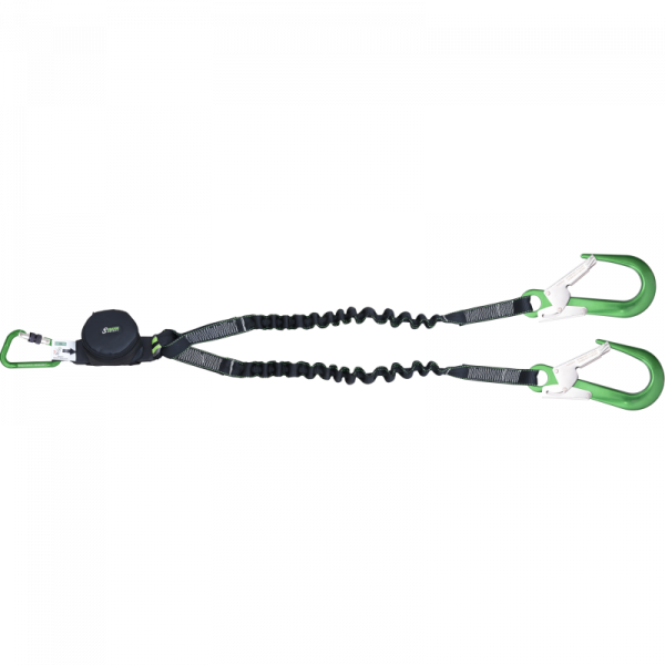 Elastische Gurtbandverbindungsmittel mit Falldämpfer und 3 Aluminiumkarabiner