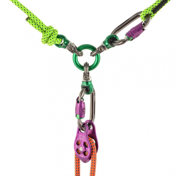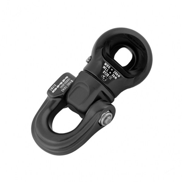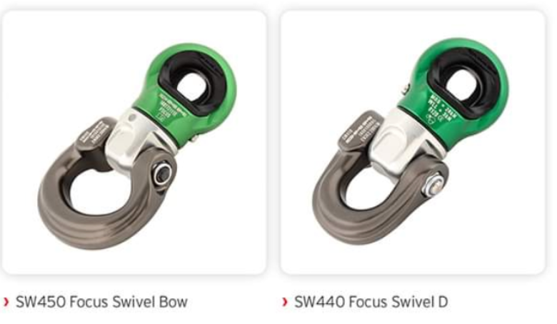 Nachrüstbare Schwenkkonverter. Die Zwei-Wege-Verriegelungsspindel im Schäkel ermöglicht die Verbindung mit festen Schlaufen wie Drahtstrops, Rigging-Platten und Trapezbrücken. Die feste Öse kann je nach Bedarf geklipst (ggf. mit einer Prest-in-Konfigurationshilfe), eingespleißt, eingestaucht usw. werden. Je nach Belastungsanforderung in zwei Bügelgrößen erhältlich. Der kleine D-förmige Bügel hält einzelne Befestigungen sauber und vorhersehbar, während die größere Größe des bügelförmigen Bügels komplexe Aufbauten ermöglicht, indem das Laden über den Bügel ermöglicht wird.