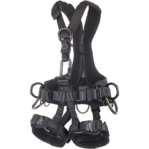 Komplettgurt für den Seilzugang, mit einem innovativen ergonomischen Rückenteil ausgestattet, der den Rücken und die Schultern des Trägers umhüllt. Rückenteil und Beinschlaufen belüftet.