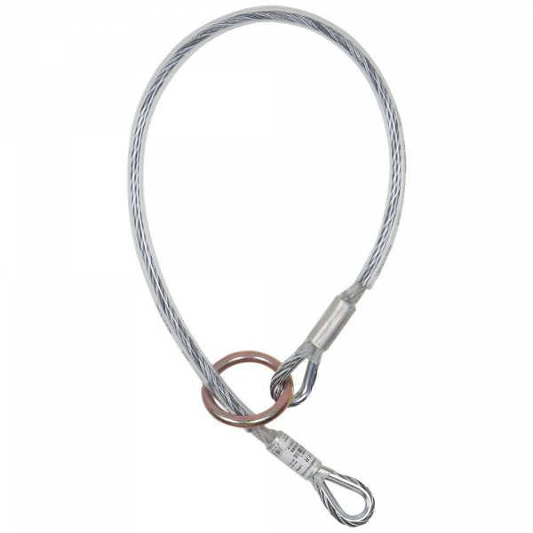 Verbindungsmittel nach DIN EN 354 und DIN EN 795, hergestellt aus ∅8 mm verzinktem Stahlseil, mit Schutzmantel aus Kunststoff, verpressten Endverbindungen und Schutzkauschen. Länge 1m, 2m und 3m. Andere Längen auf Anfrage.
