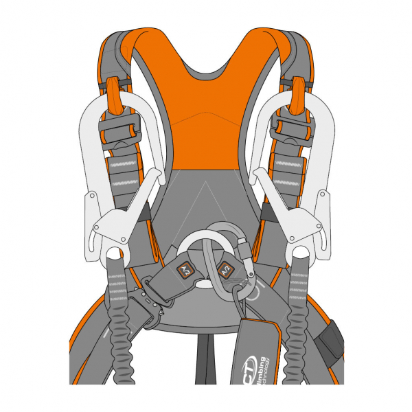 - Entworfen, um innerhalb der speziellen horizontalen Schlinge angebracht zu werden, die sich an den Schultergurten der Gurte Gryphon, Axess QR, Axess QR Ascender, WORK TEC 140, WORK TEC und WORK TEC QR befindet;