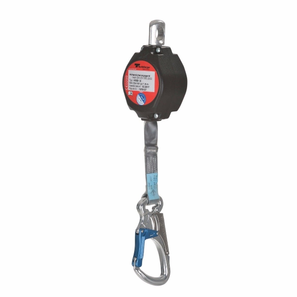 Das Verbindungsmittel ist kantengeprüft und es ist auch mit einem Sturzindikator am Bandende ausgestattet! Das HWB 1,8 ist zusätzlich für das Sichern in Hubarbeitsbühnen zugelassen.