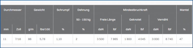 KM Pro ist als Sicherheitsprodukt nach EN 1891 A und CI1801 zertifiziert. Seine mittlere Bruchfestigkeit beträgt 35kN (7865 lbf), bei einer Dehnung von nur 2,0 %. Der Polyamidkern sorgt dafür, dass das Seil auch nach sehr langem Gebrauch rund und geschmeidig bleibt. Der Polyestermantel schützt seinerseits diesen Kern mit einer statischen, festen und chemikalien- sowie UV-beständigen Hülle. KM Pro ist das Seil, auf das Sie schon lange gewartet haben. Probieren Sie es doch einfach aus!