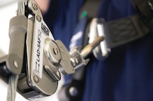Zwei voneinander unabhängige Verschlusssysteme, ein primäres nockenbasiertes und ein sekundäres Trägheitsverschlusssystem, rasten bei einem Absturz nach wenigen Zentimetern ein, sodass der Benutzer wieder Tritt fassen und weiter steigen kann.