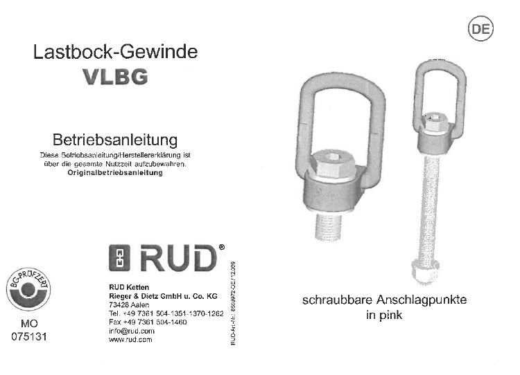 VLBG1t-M121/2"(1405394-69) (Produktion eingestellt) | 1 t | M12 / 1/2" | — |