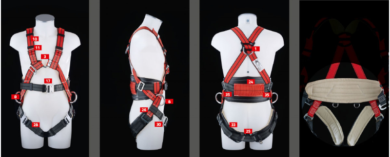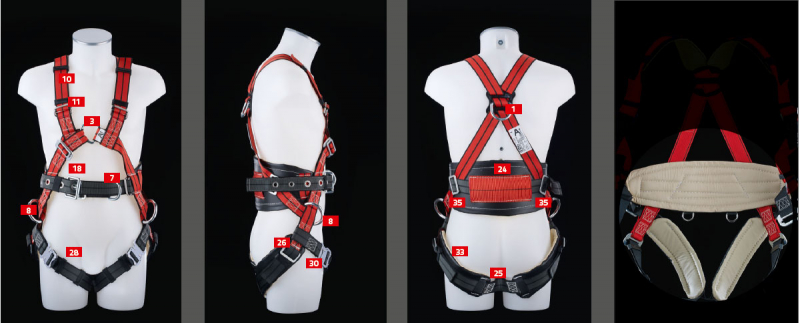 - Var ES: Bauchgurt mit Ein-Dornschnalle, Bauchgurt mit Steigschutzöse für ortsfeste Steigeinrichtungen DIN EN 353-1