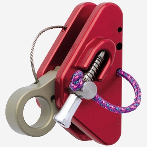 - Dank der entfernbaren Achse kann die Seilklemme überall am Seil befestigt und wieder abgenommen werden.