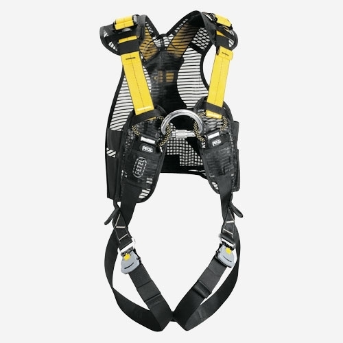 - Eine vorder- und eine rückseitige Auffangöse zum Einhängen eines Auffangsystems.