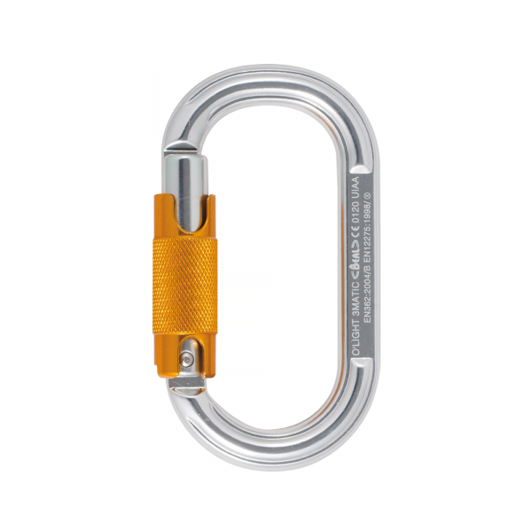 Symmetrical aluminium oval shaped connector for use with equipment with swivelling side plates such as pulleys, rope clamps, mobile fall arrest devices, etc