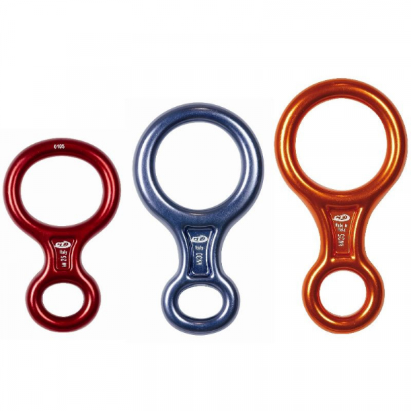 Klassisches Abseilgerät in Achterform, ideal zum dynamischen Sichern des Vorsteigers und für das Abseilen mit dem Doppelseil.