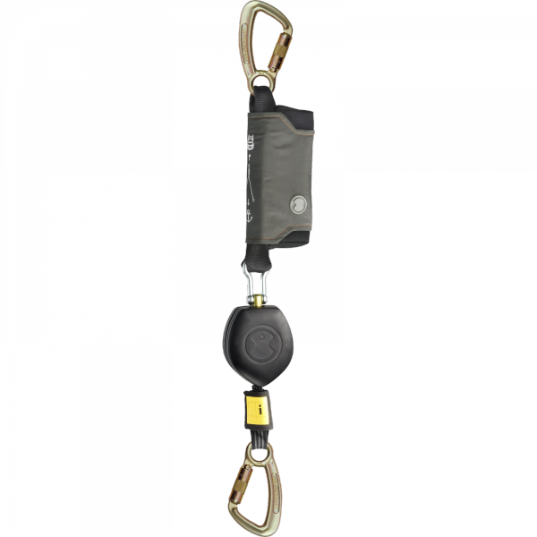 Ultrakompaktes Höhensicherungsgerät mit KOBRA TRI Karabiner Anschlagpunktseite. Das Peanut enthält bereits den neuen One-4-All Dämpfer und ist damit für die Nutzungsgewichte 50-135 kg zugelassen.
