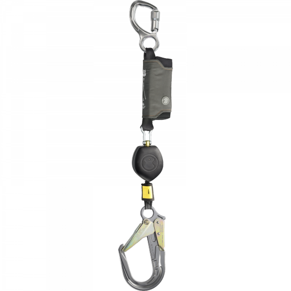 Ultrakompaktes Höhensicherungsgerät mit FS 64 AL GR Karabiner Anschlagpunktseite. Das Peanut enthält bereits den neuen One-4-All Dämpfer und ist damit für die Nutzungsgewichte 50-135 kg zugelassen.