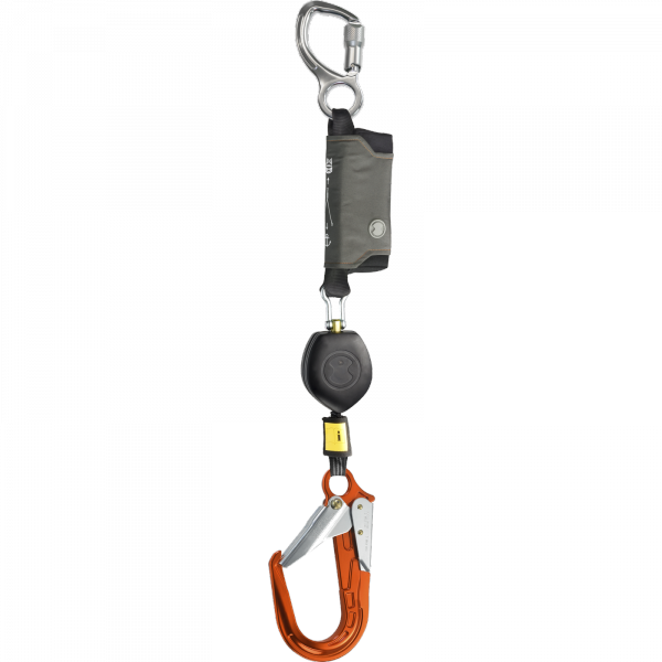 Ultrakompaktes Höhensicherungsgerät mit FS 64 AL OR Karabiner Anschlagpunktseite. Das Peanut enthält bereits den neuen One-4-All Dämpfer und ist damit für die Nutzungsgewichte 50-135 kg zugelassen.