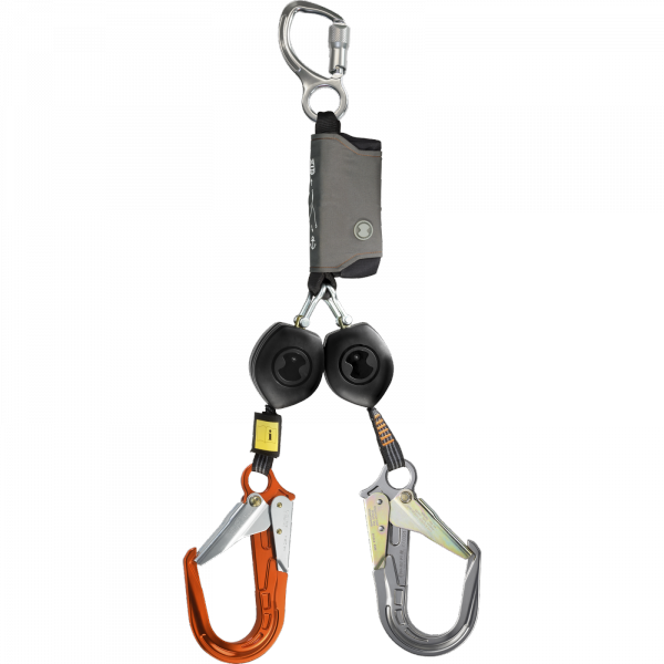 Ultrakompaktes Höhensicherungsgerät mit FS 64 AL OR+GR Karabiner Anschlagpunktseite. Das Peanut enthält bereits den neuen One-4-All Dämpfer und ist damit für die Nutzungsgewichte 50-135 kg zugelassen.
