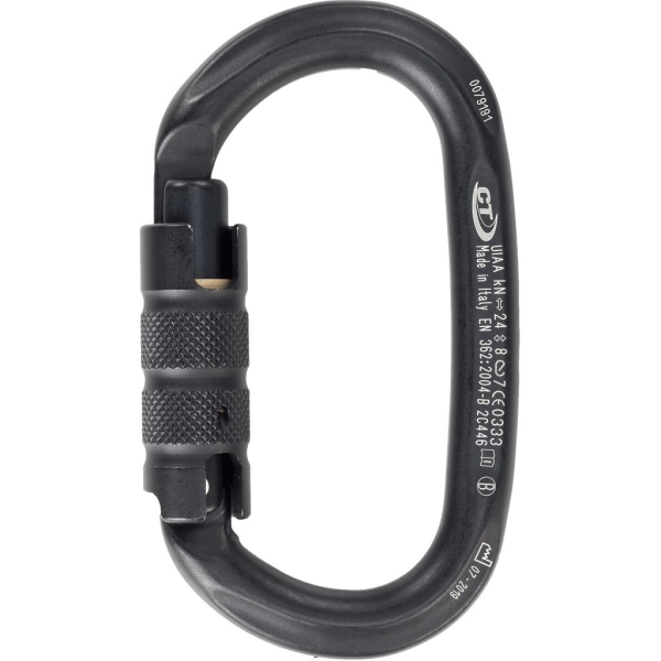 - Ovaler Karabiner aus Aluminiumlegierung mit automatischem Triplexverschluss.