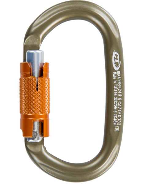 Ovaler Karabiner aus Aluminiumlegierung mit robuster Form und automatischem Twistlockverschluss, max. Gateöffnung von 21 mm